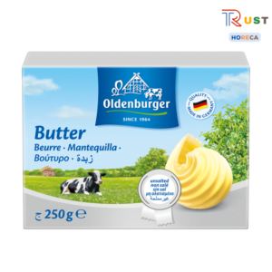 Nâng tầm thực đơn của bạn với Bơ lạt hiệu Oldenburger 82% Béo – một sản phẩm bơ ăn kèm với bánh mì không thể thiếu trong mọi bữa tiệc buffet.