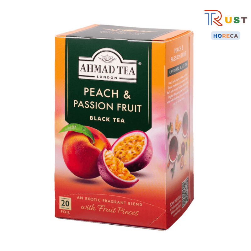 Với Trà Đào & Chanh Dây Ahmad, bạn sẽ được trải nghiệm hương thơm thanh mát của chanh dây kết hợp với sự ngọt ngào, tươi mới của đào, tạo nên một thức uống nhẹ nhàng, dễ uống và cực kỳ thư giãn. Đây là lựa chọn tuyệt vời để thưởng thức trong những buổi chiều thư giãn hay sau một ngày làm việc căng thẳng.